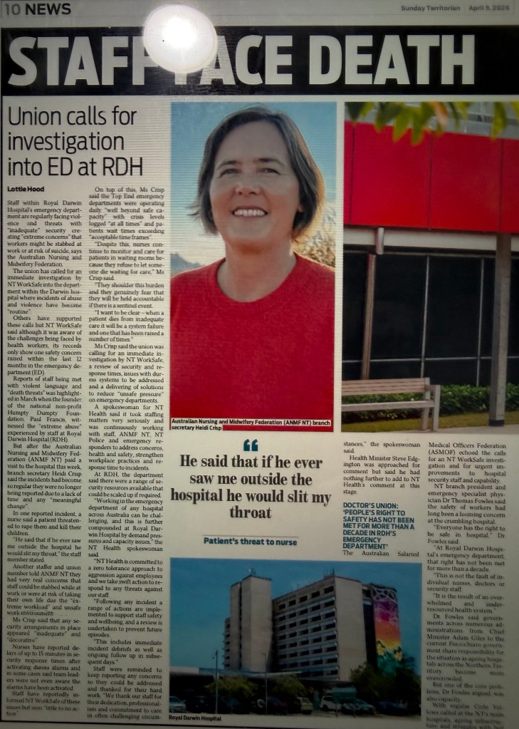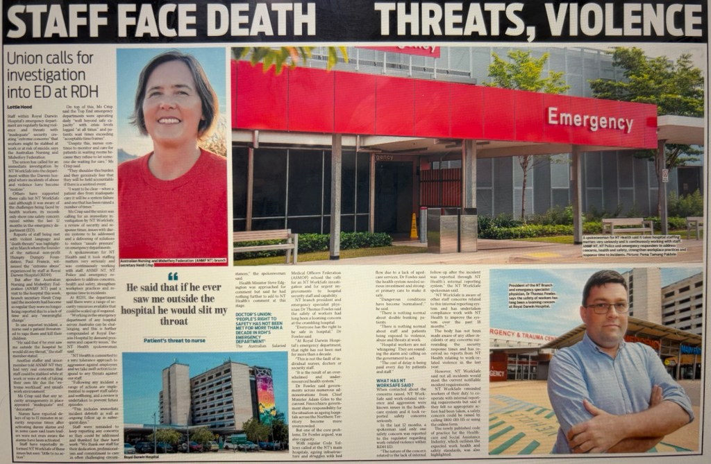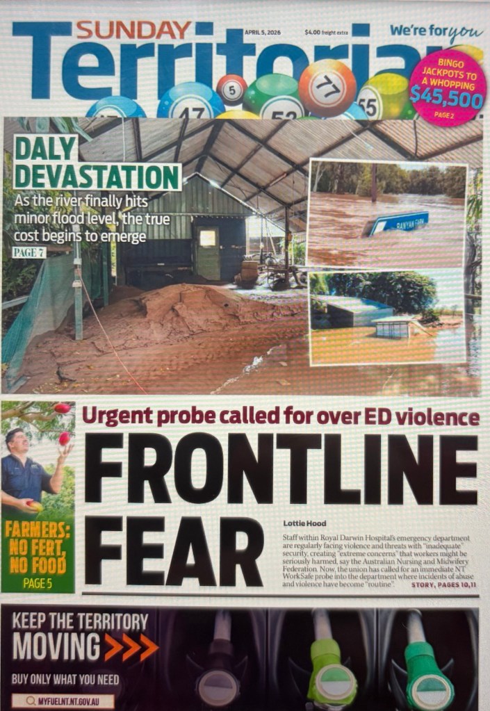 You are far braver and bolder than I! I am far too frightened even to contemplate travel. It is bad enough in Australia and in Darwin. An awful headline in today’s Sunday Territorian.
