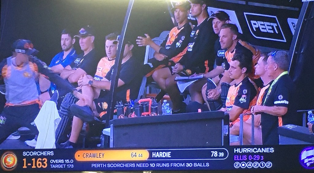 The last thing I did today for fun, enjoyment and relaxation was to watch my favourite Big Bash League cricket team Perth Scorchers play in the Hobart Hurricanes in a 20 over cricket game in Perth, in front of 28,000 people tonight.