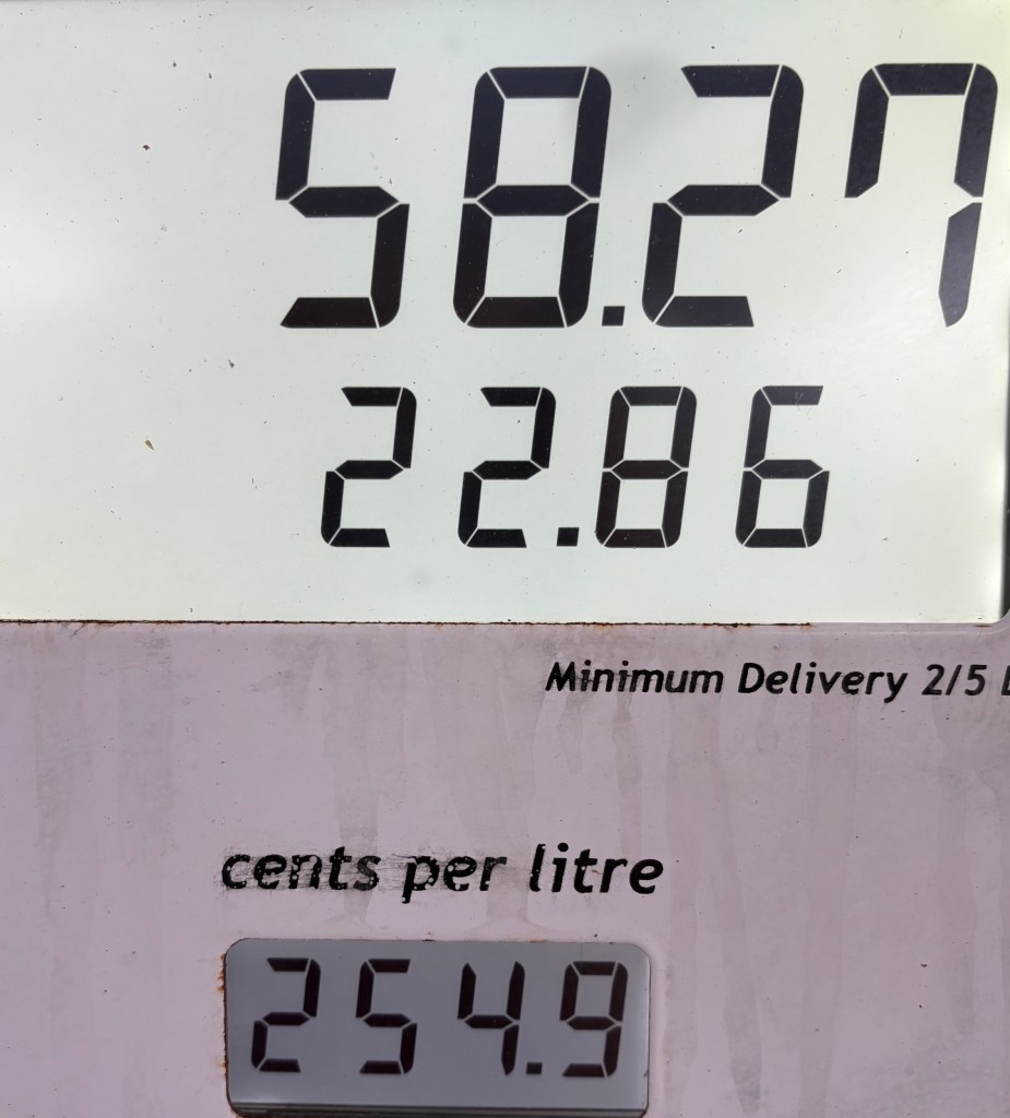 Petrol north of $2.50 per litre in Darwin Posted on March 23, 2026 by pooroldhenry My latest fill after 183 kilometres of driving. Every time I top up the price has gone up. Share this: Share on X (Opens in new window) X Share on Facebook (Opens in new window) Facebook Like Loading...