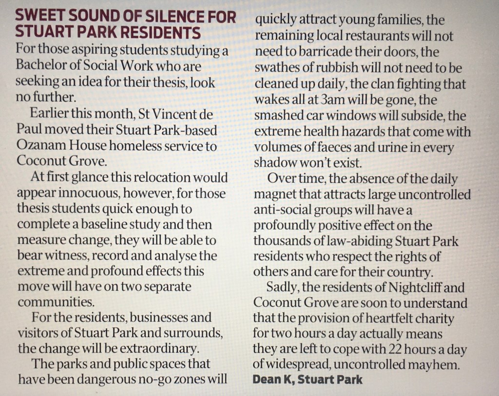 I am bemused by charities and groups that provide food, clothing, free accommodation, transport and other amenities for people who come into Darwin from communities with nowhere to go and stay.