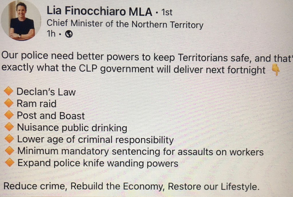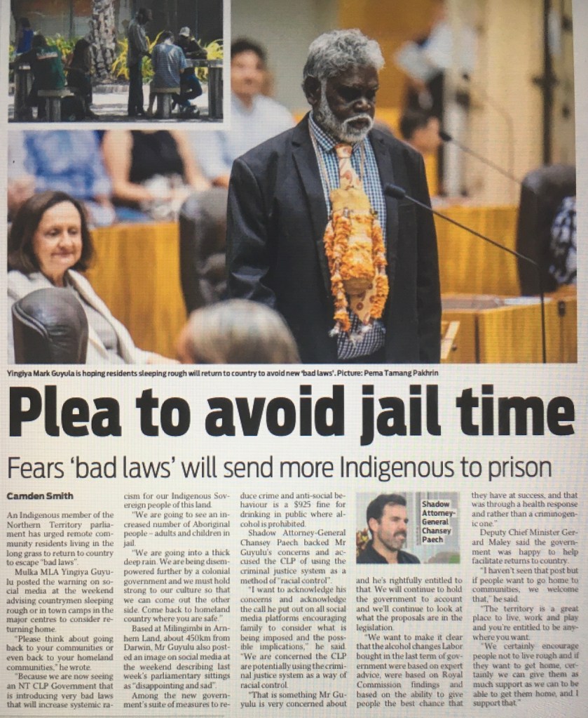 Issues of crime and drugs are suffocating the Territory. How awful that our Territory comes out in upper-level rankings compared to the rest of Australia on these issues. The NT of 2024 is not the wonderful, peaceful place full of humanity and decency, as was the case when I came north in 1975.