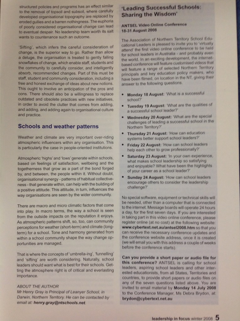 There have been few wins for the NT in recent times, but a significant exception was the appointment of Michael Murphy as Police Commissioner. Commissioner Murphy is a highly principled leader, and there could not have been a better pick than him to take the NT Police Force from the doldrums into a new phase of confidence, trust, awareness and empathy for every force member. The validity of his leadership derives from the respect he has for our police and auxiliaries and the respect they, in turn, invest in him. He is a positively influential leader.