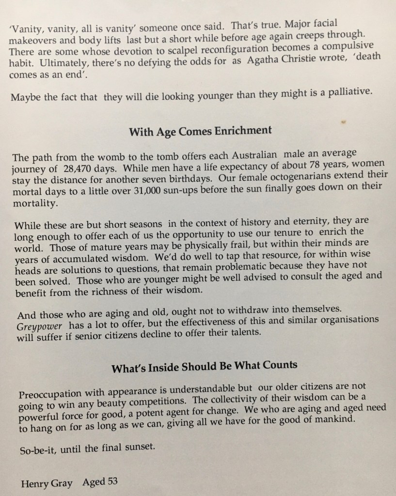 As a person now aged 78, I cringe at the thought of physical or mental incapacity requiring me to go into aged care in a residential facility. I have read too many chilling accounts of what can and often does go wrong. The Royal Commission into Aged Care was a real eye-opener for me. Should I decline to become dependent on others, particularly in an institutionalised situation, and having lived what I hope has been a complete and fruitful life, I want to be able to opt-out. That is why entitlement to Voluntary Assisted Dying is so essential. The alternatives are not at all palatable.